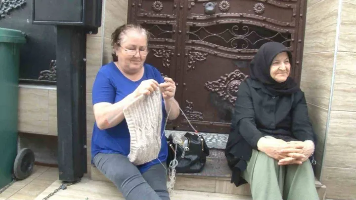 Kızını sınava bırakan anne stresini okul önünde örgü örerek attı