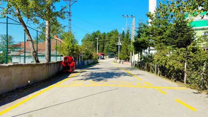 Sakarya Büyükşehir Belediyesi, Kocaali ilçesinin merkezinde sıcak ve soğuk yol çizgi imalatları tamamlandı.