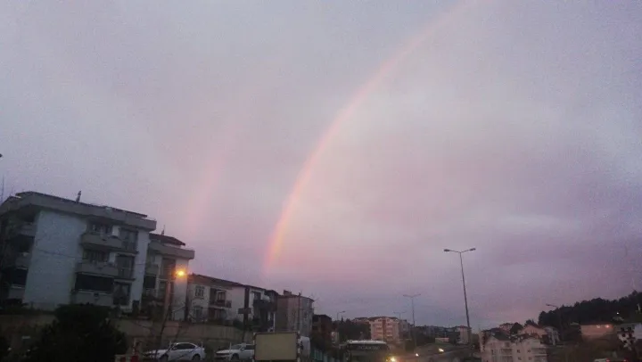 Kocaeli'de yağmur sonrası oluşan çifte gökkuşağı vatandaşları hayran bıraktı.