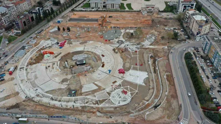 Kocaeli'de kentin yeni cazibe merkezi olarak planlanan Milli İrade Meydanı'nda çalışmalar sürüyor.