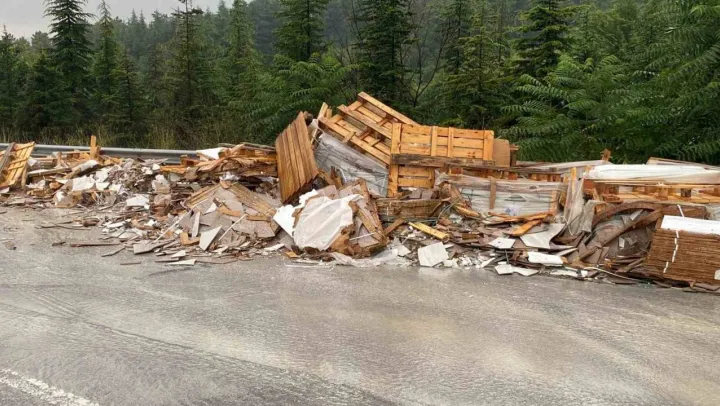 Kocaeli TEM Otoyolu'nda yağmur sebebiyle kayganlaşan yolda makaslayan seramik yüklü tır, bariyerlere çarptı. Kasası devrilen tırda bulunan seramikler yola saçılırken trafik durma noktasına geldi.