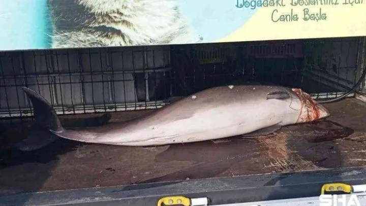 Kocaeli'nin Darıca ilçesinde ölü yunus balığı kıyıya vurdu. Yunus balığının üzerinde delikleri fark eden görevliler, yetkililere haber verdi.