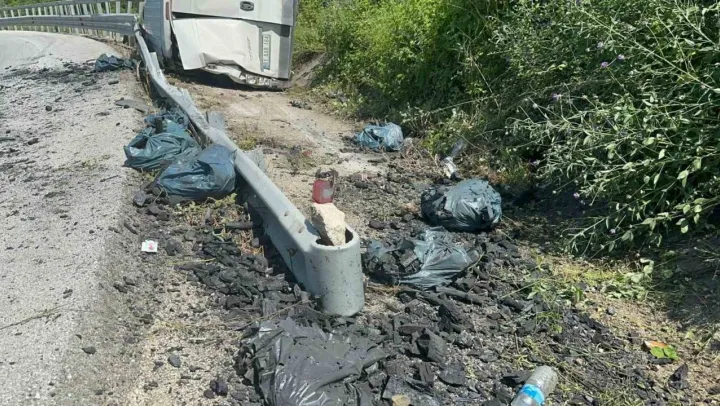 Bursa'da mangal kömürü taşıyan kamyonet hızlı girdiği virajı alamayınca yan yattı. Sürücü, ağır yaralı olarak hastaneye kaldırıldı.