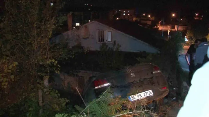 Çekmeköy'de yokuş aşağı inerken hızını alamayan otomobil bir evin bahçesine uçarak durabildi. Olayda ölen veya yaralanan olmazken, maddi hasar meydana geldi.