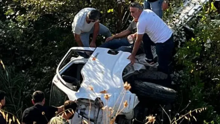 Kontrolden çıkan kamyonet ağaçlık alana uçtu
