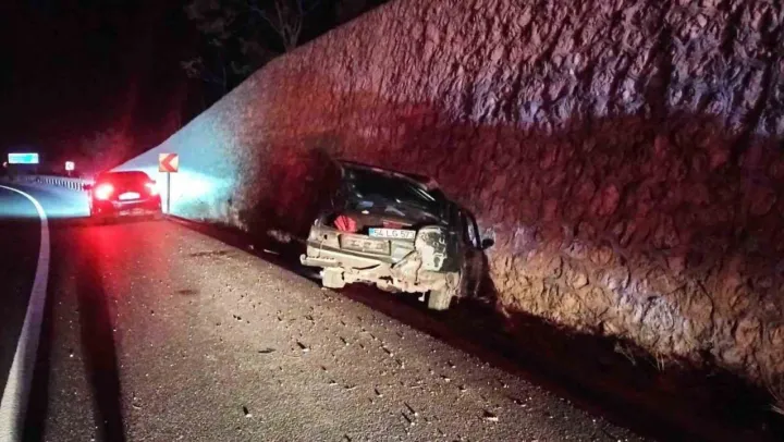 Kontrolden çıkan otomobil istinat duvarına çarptı, sürücü yaralandı
