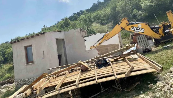 Körfez Belediyesi, Kutluca köyündeki 3 kaçak yapının yıkım çalışmalarını tamamladı.
