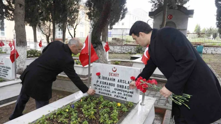 Körfez'de şehit mezarlarına karanfil bırakıldı