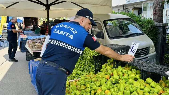 Körfez Belediyesi Zabıta Müdürlüğü ekipleri, ilçe genelinde kurulan semt pazarlarında fiyat ve gramaj denetimi gerçekleştiriyor.