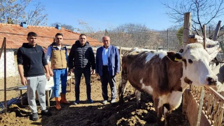 Afyonkarahisar'ın Dinar ilçesinde köy muhtarı depremzedelere büyükbaş hayvan bağışladı.