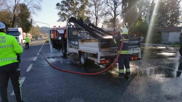 Muğla'da seyir halinde ve havuz kimyasalı taşıyan araçta çıkan yangın itfaiye ekiplerinin müdahalesi ile söndürüldü.