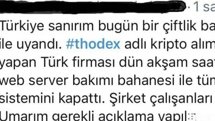 Kripto para borsası Thodex'e ulaşılamıyor. 6 saat sürecek denilen çalışma, saatler geçmesine karşın halen düzelmedi. Firmadan konuyla ilgili yatırımcıları memnun etmeyen bir açıklama geldi. Açıklamada 'Sizlere daha iyi hizmet verebilmek adına gelen ortaklık teklifini olumlu değerlendirme kararı alınmıştır. Bu sürecin tamamlanabilmesi için işlemlerin durdurulup devir sürecinin tamamlanması gerekmektedir. Süreç ise yaklaşık 4-5 iş günü sürecektir. Bu süre zarfında kullanıcılarımıza düzenli olarak bilgilendirme sağlanacaktır' denildi.