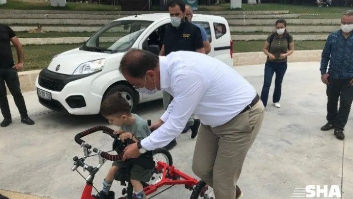 BİSİKLETİ ÇALINAN SEREBNAL PALSİ HASTASI 5 YAŞINDAKİ EFE CAVUŞ'A BEYLİKDÜZÜ BELEDİYE BAŞKANI MEHMET MURAT ÇALIK TARAFINDAN ÖZEL BİR BİSİKLET HEDİYE EDİLDİ