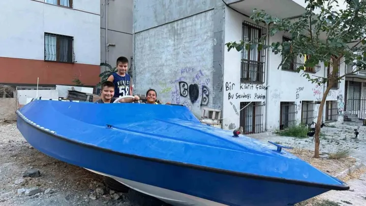 İstanbul Küçükçekmece'de sokağa bırakılan tekne çocukların oyun alanı haline geldi. Çocuklar teknede oyunlar oynayarak eğlenirken, o anlar cep telefonu kamerasıyla kaydedildi.