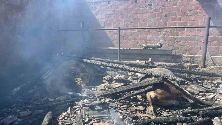 Bursa'nın İnegöl ilçesinde yangın sebebiyle küle dönen ahırdaki 2 büyükbaş hayvan telef oldu.