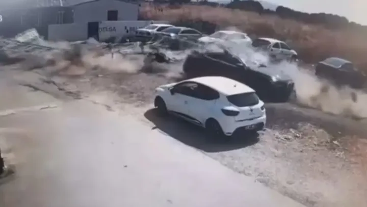 Bursa'da bir inşaat sahasında 60 metrelik kule vinç devrildi. Vincin kabininde mahsur kalan operatörün kurtarılma anları ise nefes kesti. Büyük bir gürültü ile devrilen vinç, inşaat sahasında çalışan Suriyelilere savaş günlerini hatırattı. Tekbir getiren Suriyeli işçilerin o anları anbean kaydedildi.