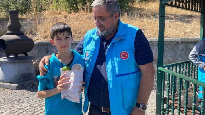 Türkiye Diyanet Vakfı, çevre yürüyüşü ve mıntıka temizliğinin ardından Kur'an kursu öğrencilerine ve gönüllülerine pide ikramında bulundu.
