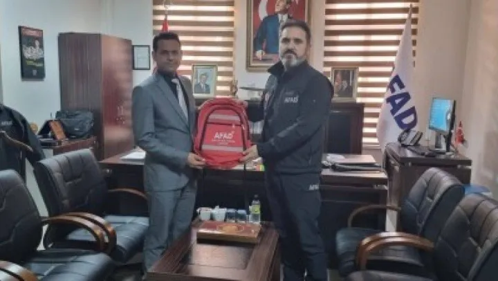Bilecik DSİ 33'üncü Şube Müdürlüğü'nde atanarak göreve başlayan Mustafa Şimşek, AFAD İl Müdürü Mehmet Hayri Demirel'i makamında ziyaret etti. Gerçekleşen ziyarette kurumlar arası işbirliği çerçevesinde istişareler yapıldı. Ziyaretten duyduğu memnuniyeti ifade eden Müdür Demirel, DSİ Müdürü Şimşek'e afet ve acil durum çantası hediye ederek teşekkürlerini sundu.