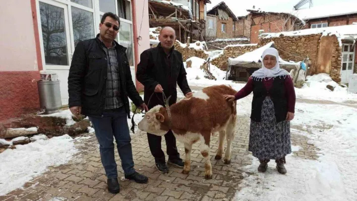 Kütahya'nın Simav ilçesinin Demirciköy beldesinde oturan Gülper Tosun, 18 bin liraya sattığı danasının parasını depremzedelere bağışladı.