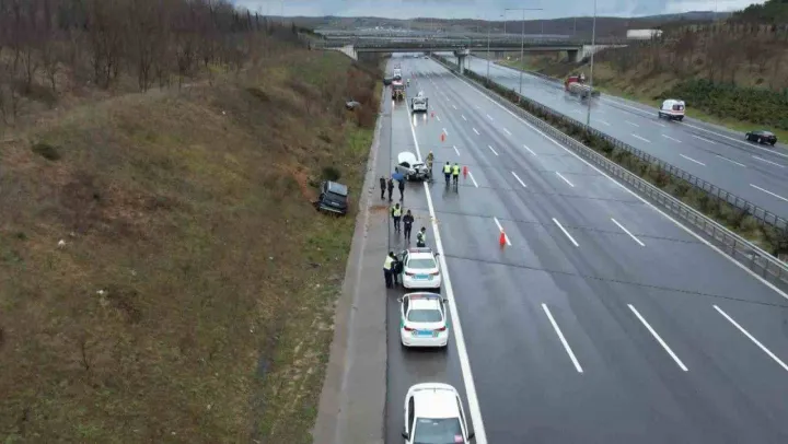 Kuzey Çevre Otoyolu'nda gizli buzlanma nedeniyle kayganlaşan yolda, direksiyon hakimiyetini kaybeden sürücüler peş peşe kaza yaptı. Kazada 4 araçta maddi hasar meydana gelirken şans eseri ölen ya da yaralanan olmadı. Öte yandan yaşanan kaza dronla havadan görüntülendi.