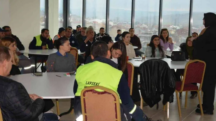Çanakkale'nin Lapseki ilçe Belediye personeline hizmet içi eğitim programı çerçevesinde, iş sağlığı ve güvenliği eğitimi verildi.