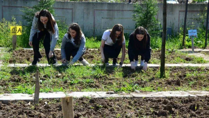 Her sınıf için bahçede küçük bir adacık yaptıklarını söyleyen Tekin, 'Öğrenciler sınıf öğretmenleriyle beraber sebze, meyve, çiçek dikiyorlar. Öğrencilerimizin sofralarına gelen sebze ve meyvenin ne kadar büyük bir zahmetle üretildiğini öğrenmelerini istiyoruz. Teşbihte hata olmazsa öğrencilerimize aç kalmamayı öğretiyoruz. Okulun sadece a, b, c, d, e şıklarından oluşan soruların yeri olmadığını öğrensinler istiyoruz. Hayatı yaparak ve yaşayarak öğrenmelerini istiyoruz. Öğrenciler sınav kaygısının önüne geçmeleri için de iyi bir terapi oluyor. İnşallah bunu daha ileri boyuta taşımayı istiyoruz. Bu işin esas mutfağında da öğretmen arkadaşlarımız var. Öğrencilerimiz soğan, sarımsak, kıvırcık ekmeye başladı. Bu haftadan itibaren ekimler hızlanmaya başlayacak. Fideler çıkmaya başlayınca domates, salatalık, biber, patlıcan ekmeye de başlayacağız' şeklinde konuştu.