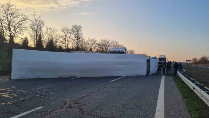 Kaza, TEM Otoyolu Hamitabat köyü yakınlarında meydana geldi. Edinilen bilgilere göre, Ş.D. idaresindeki 34 HR 2295 plakalı tır, sürücüsünün direksiyon hakimiyetinin kaybedilmesi üzerine devrildi.