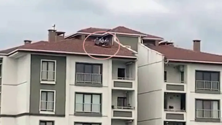 Sakarya'nın Sapanca ilçesinde Türkiye Kupası 1. Tur eleme maçında ilginç görüntü kaydedildi. 3 kişi stadın yanında bulunan dört katlı binanın çatısından maçı takip etti. Vatandaşların canlarını hiçe saydığı anlar ise cep telefonu ile saniye saniye görüntülendi.