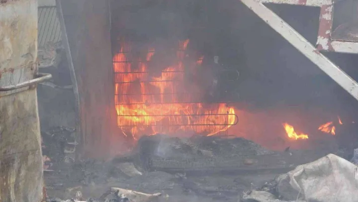Maltepe'de geri dönüşüm deposunda, işçilerin kaldığı 2 katlı konteynerde yangın çıktı. Yangında işçiler canını zor kurtarırken, alevlere teslim konteyner havadan görüntülendi.