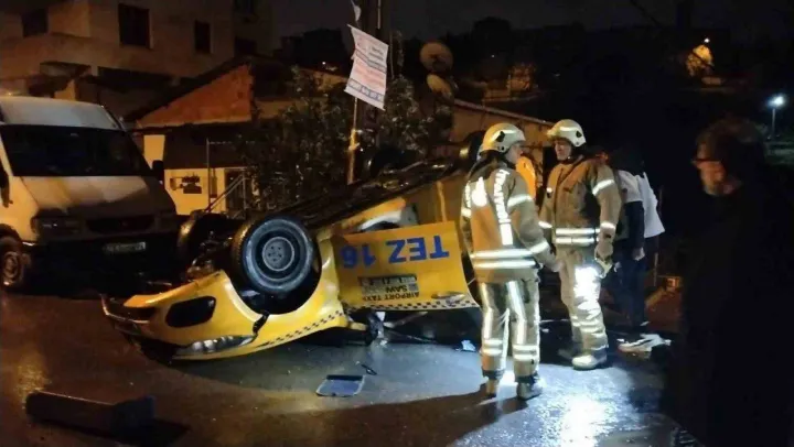 Maltepe'de aracının direksiyon hakimiyetini kaybeden ticari taksi sürücüsü önce elektrik panosuna çarptı, ardından da takla atarak durabildi. Kazada taksi şoförü hafif şekilde yaralandı.