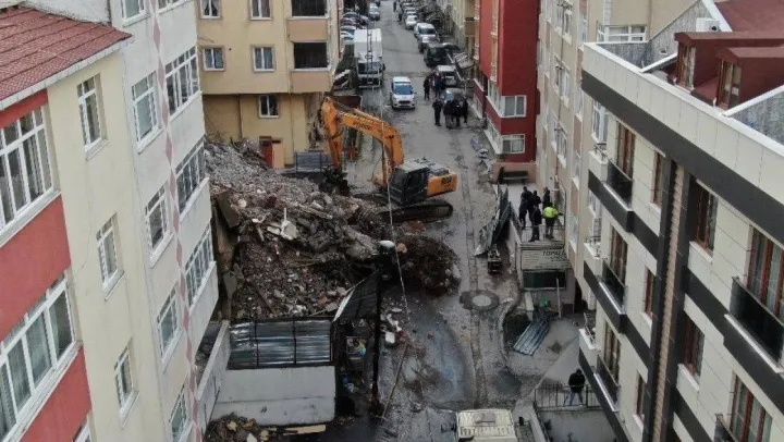 Kahramanmaraş merkezli depremler sonrasında İstanbul'un ilçelerinde hasarlı tespit edilen yapıların yıkımı devam ediyor. Maltepe Belediyesi tarafından Fındıklı Mahallesi'nde bulunan bir binanın yıkım çalışmaları sırasında göçük meydana geldi. Binada çökme olurken iş makinesinin bir bölümü enkaz yığınları altında kaldı. Olayda ölen ya da yaralanan olmazken, çevre binalar da yıkımdan etkilendi. Yıkılan binanın yan binasında yaşayan vatandaşlar önlem alınmadan yıkım yapılmasına tepki gösterirken, yıkım çalışmalarında bir bölümü göçük altında kalan iş makinesi başka bir iş makinesinin yardımıyla kurtarıldı.