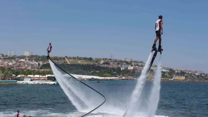 Kendilerini izleyenlere yaklaşarak vatandaşlarla selamlaşan sporcular, denizin üzerinde adeta bir martı gibi süzüldü. Flyboard gösterisini gerçekleştirilen ve alanında Türkiye şampiyonu olan Kahraman Aktaş'ın gösterisini ilgiyle takip eden vatandaşlar, heyecan dolu gösteriyi beğendiklerini ifade etti.