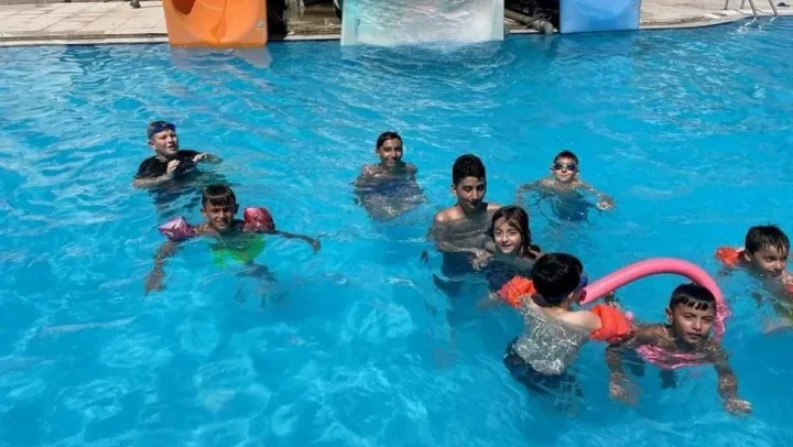 Mehmet Kepez Kur'an kursu öğrencileriyle havuzda