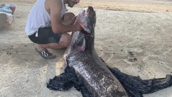 Yunanistan sınırında bulunan Meriç Nehri'nde, Edirneli amatör balıkçılar tarafından oltayla 73 kiloluk yayın balığı yakalandı. Nehirden güçlükle çıkarılan dev balık, hem çevredeki vatandaşlar hem de diğer balıkçılar tarafından ilgiyle izlendi.