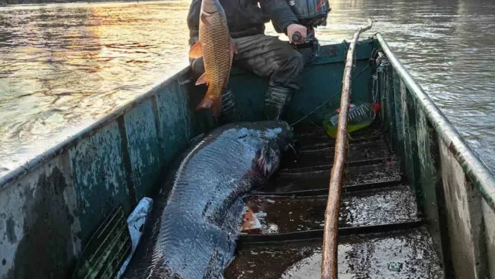 Edirne'de, Meriç Nehri'nde amatör balıkçıların ağına 2 metre boyunda 70 kilogramlık yayın balığı takıldı.