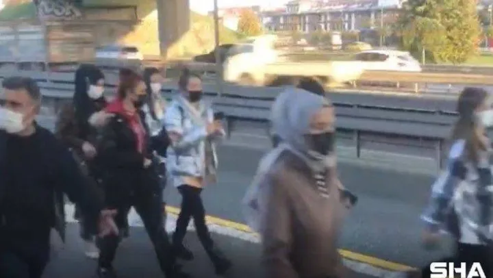 Görüntüler de yolcuların yol üzerinde toplu halde yürüdükleri anlar izleniyor. Metrobüs hattındaki bu yolculuğu başka araçtaki yolcular kaydetti. Görüntülerin sonunda arızalanan metrobüs de görülüyor.