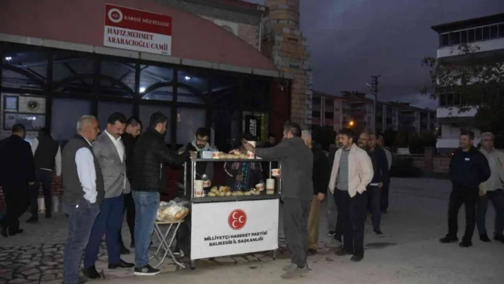 Balıkesir Milliyetçi Hareket Partisi İl Başkanı Ekrem Gökay Yüksel, 'Sabah namazı buluşmalarımız aralıksız devam ediyor. Cami cemaatinle sabah namazımızı eda ettikten sonra sıcak çorba ikramında bulunup vatandaşlarımızla sohbet ediyoruz. Bugünde Hafız Mehmet Arabacıoğlu Camii'nde cami cemaatiyle bir araya geldik. Hafız Mehmet Arabacıoğlu İmam Hatip Hatibi Mehmet Dağdevir'e ve Mahalle sakinlerine misafirperverliklerinden dolayı teşekkür ediyorum' dedi.