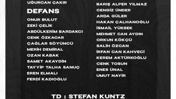 A Milli Futbol Takımı'nın, EURO 2024 Avrupa Elemeleri D Grubu ilk maçında 25 Mart Cumartesi günü deplasmanda oynayacağı Ermenistan ve 28 Mart Salı günü Bursa'da Hırvatistan karşı karşıya geleceği maçların aday kadrosu belirlendi. A Milli Takım Teknik Direktörü Stefan Kuntz, kadroya Fenerbahçe'den Altay Bayındır, Ferdi Kadıoğlu, İsmail Yüksek, Arda Güler, İrfan Can Kahveci ve Samet Akaydin'i davet etti. Böylece Fenerbahçe, 6 futbolcu ile milli takıma en fazla oyuncu gönderen takım oldu.