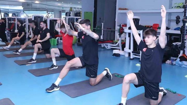 Milliler, günün ilk idmanında salonda çalıştı