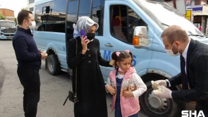 Pendik'te minibüsçüler yolculara maske ve kolonya dağıttı. Kolonya ve dezenfektan dağıtılan vatandaşlar uygulamadan memnun kaldı.