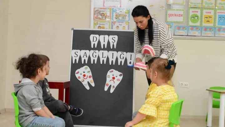 18-24 Kasım 'Toplum Ağız ve Diş Sağlığı Haftası' nedeniyle minik öğrencilere öğretmenleri tarafından verilen eğitimde ağız ve diş sağlığının önemi anlatıldı, maketlerle nasıl diş fırçalamaları gerektiği öğretildi. Öğretmenler ayrıca ağız ve diş sağlığının, çocukların yaşam kalitesini, sosyal ilişkilerini, beden ve buna bağlı olarak da ruh sağlığını etkileyen oldukça önemli bir faktör olması sebebiyle, çocukların erken dönemde ağız diş sağlığı açısından bilgilendirilmesinin gerekli alışkanlıkları kazandırabilmek açısından çok önemli olduğunu vurguladılar. Öğretmenlerini dikkatle dinleyen minik öğrenciler etkinlikte doğru diş fırçalamayı öğrendiler. Verilen eğitimlerin ardından çocuklara diş fırçası dağıtıldı.