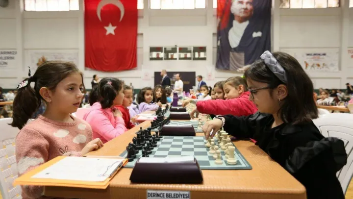 Derince'de 320 öğrencinin katıldığı satranç turnuvasında kıyasıya mücadele renkli görüntülere sahne olurken dereceye giren miniklere ödülleri verildi.