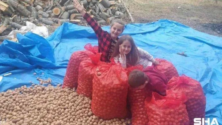 Mustafakemalpaşa ilçesinin Sünlük köyünde yaşayan Yağmur, Ada ve Deniz Uslu kardeşler, ailelerinin toplayıp kuruttuğu cevizleri kuruduktan sonra çuvallara dolduruyor. Küçük yaşlarına rağmen boylarından büyük kürekleri ellerine alan çocuklar, kuruyan cevizleri satışa sunmak için çuvallara dolduruyor. Cevizleri çuvallara doldurmakla kalmayan minikler, aynı zamanda cevizin faydalarını da anlatıyor. Yaşının kilosu 25 lira olan cevizler, kurutulduktan sonra kilosu 35 liradan satılıyor. Minik kardeşlerin satışa hazırladığı cevizler Türkiye'nin her yerine gönderiliyor.