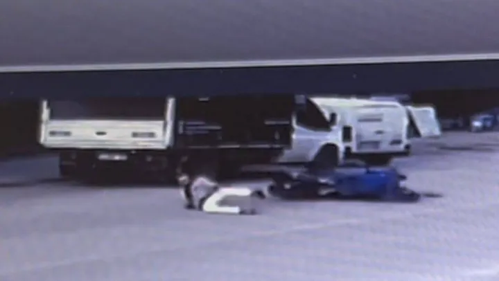 Bursa'nın İnegöl ilçesinde sürücüsünün kontrolünden çıkan motosiklet devrilip sürüklenerek yola kenarında park halinde olan kamyonete çarptı. Kaza anı bir işyerinin güvenlik kamerasına saniye saniye yansıdı.