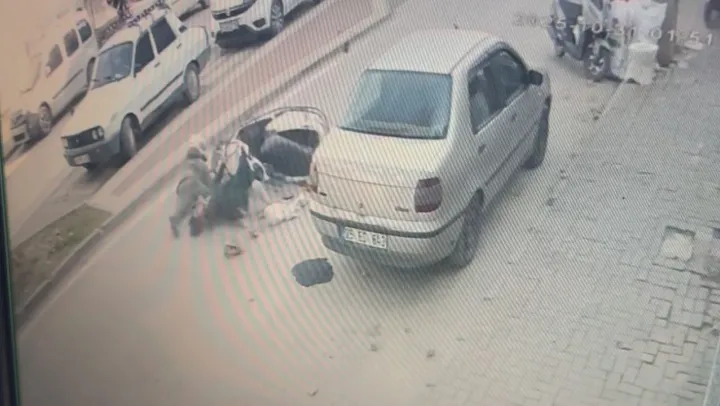 Bursa'nın İnegöl ilçesinde meydana gelen kazada motosiklet yayaya çarptı: 2 kişi yaralandı. Kaza anı bir işyerinin güvenlik kamerasına saniye saniye yansıdı.