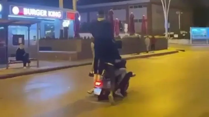 Olaya ilişkin inceleme başlatan polis ekipleri, motosiklet sürücüsünün Ö.A. (19), diğer şahısların ise M.Y. (19), F.Y.O. (17), H.Ç. (18), E.A. (19) olduğunu tespit etti. Şahıslar hakkında 'trafik güvenliğini tehlikeye sokma' suçundan adli işlem başlatıldı. Ayrıca, ehliyetine el konulan sürücüye, 'karayolları trafik kanuna muhalefet' suçundan idari para cezası uygulandı.