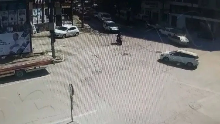 Motosikletiyle otomobile böyle çarptı, altında kalmaktan son anda kurtuldu
