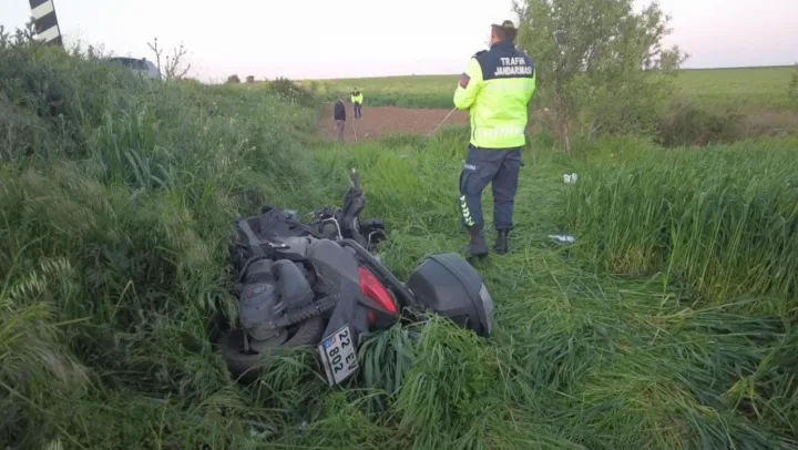 Edirne'nin Karayusuf Köyü yolunda Mustafa Babacan'ın kullandığı 22 EV 802 plakalı motosiklet, kontrolden çıkması sonucu tarlaya uçtu.