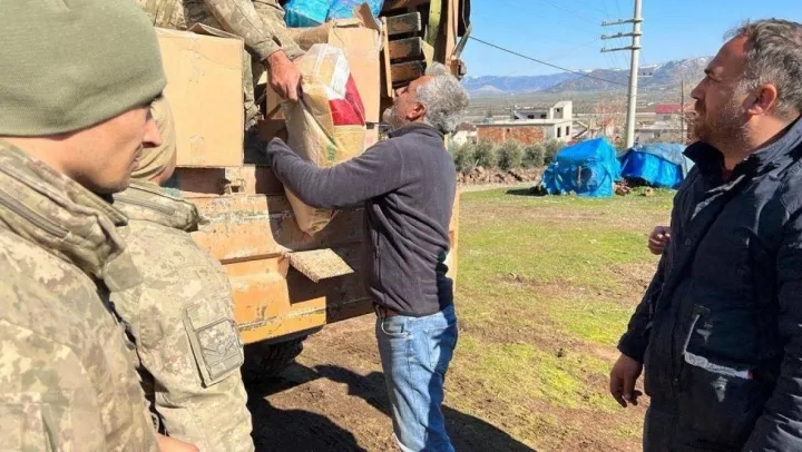 Gaziantep'in İslahiye ilçesindeki mahallelerde battaniye, giyim ve gıda malzemeleri sevkiyatı gerçekleştiren 14'üncü Zırhlı Tugay Komutanlığı'nın 1'inci Doğal Afet Yardım Birliği, depremzedelerin ihtiyaçlarını gidermeye devam ediyor.