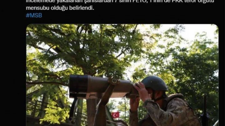 MSB'nin sosyal medya hesabından yapılan açıklamada, 'Hudut Kartalları'mız, ülkemizden Yunanistan'a ve Yunanistan'dan ülkemize yasa dışı yollarla geçmeye çalışan 15 kişiyi daha yakaladı. Yapılan incelemede, yakalanan şahıslardan 7'sinin FETÖ, 1'inin PKK terör örgütü mensubu olduğu belirlendi' ifadelerine yer verildi.